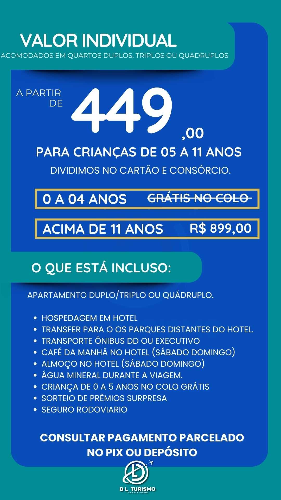 Transporte DD semi-leito, hospedagem confortável e 4 parques inclusos