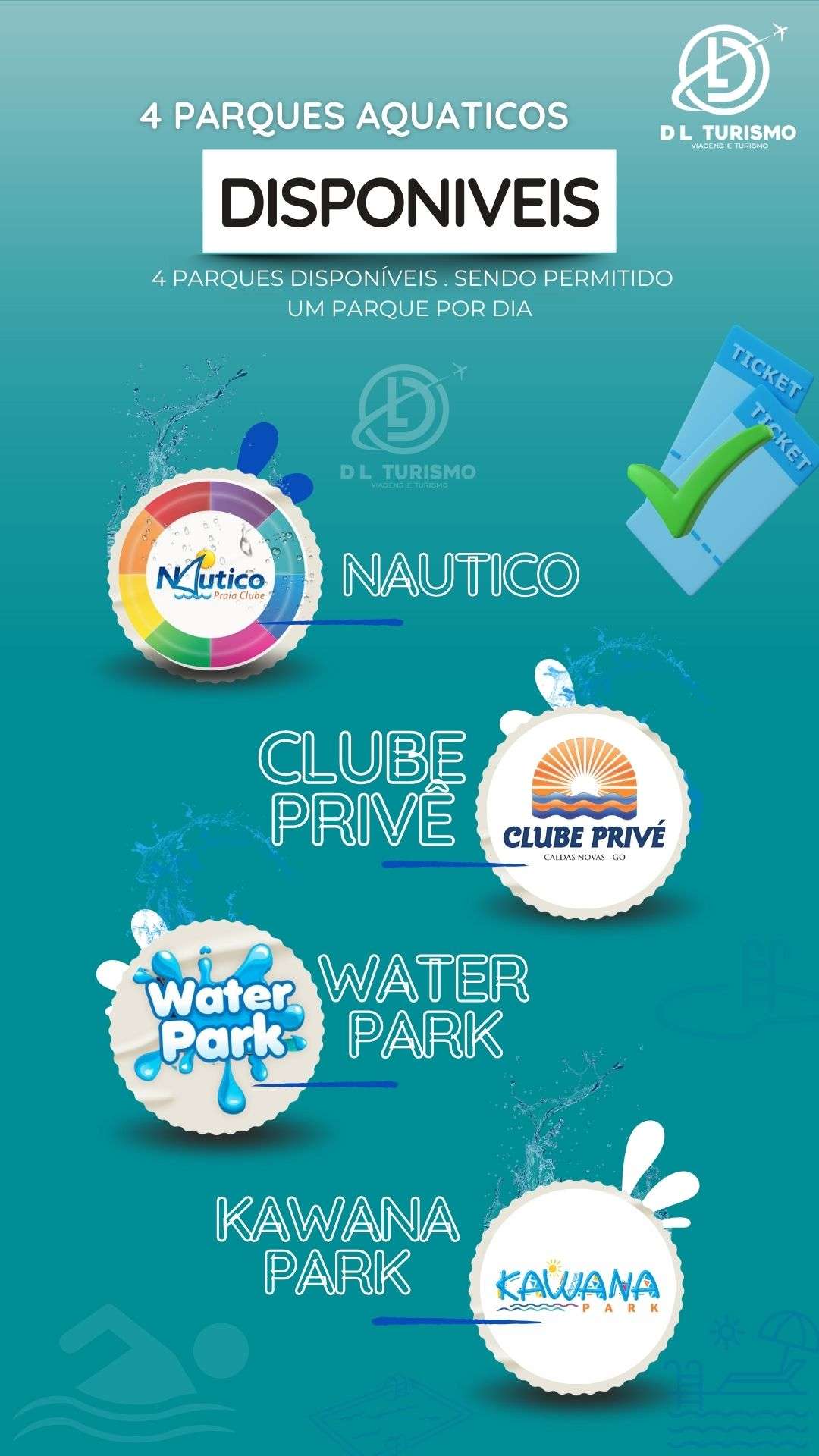 🎟 Entrada em 4 parques aquáticos (1 por dia)